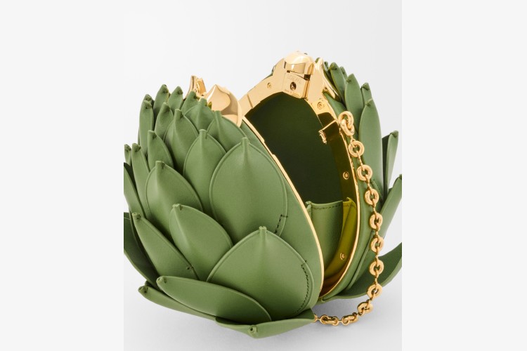 Torba u obliku artičoke nije samo modni dodatak – ona izgleda kao malo umetničko delo. Skulpturalna forma, precizno oblikovani listovi, metalna konstrukcija i luksuzna zelena nappa koža pretvaraju jednostavno povrće u ultra-glam statement komad.